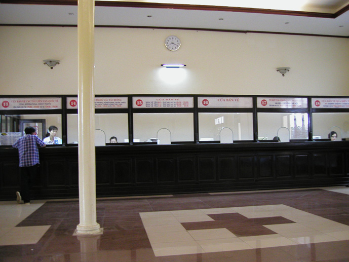 結果的には運良く乗る日の朝売り場で切符が入手できた。ドルが通用するベトナムでも、駅での支払いはドン以外はだめである。確かに公式機関ではドルはまずい。 今回の結論は日本から予め列車の切符は入手できないであろう」ということである。売り場の係員の横柄な態度からは、パスポートのコピーのみで切符を売ってくれるとは思えない雰囲気であった。
