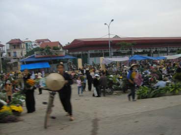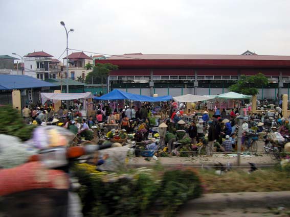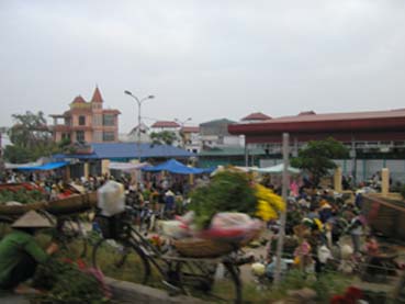 本ページの「大?旅行記」の地球家族の項目にハノイの花売りおばさん の写真を掲載して、ハノイには花が溢れている、と書いたが、そのオリジンを見つた。ハノイ市内から空港に行く途中、早朝5時前から、広大な地域に花市場が毎日立つのである。 近隣の栽培かが自転車などに花を満載して集まり、それらを売る人、仕入れる人でここは「喧騒の極」。温暖な地域で、花の栽培が発達したのでしょうが、まず人々が花を愛する心と余裕をもっていることが花市場を隆盛に保つ大切なことでしょう。