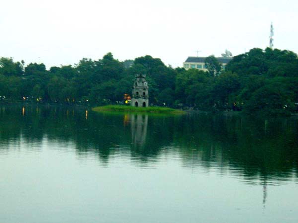 湖の上に( Hoan Kiem 湖 )船で 遊びに 行っているとき