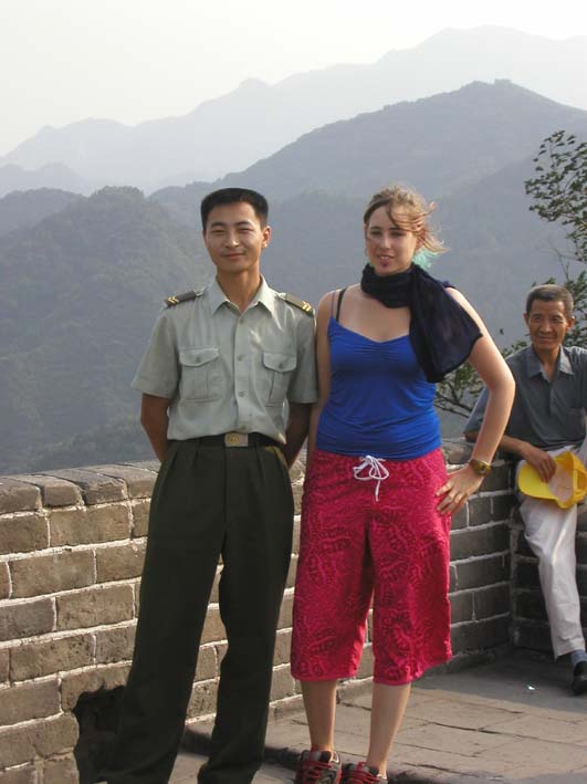 実は「ではない」のです。 休暇で万里の長城に遊びに来た兵士が、これも長城見学に来ていた西洋美人をみつけて、写真撮影を頼んだのでした。 彼女はどこの国の人でしょうかね? 長城の花、頂上の花?