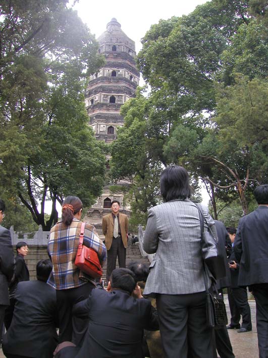 蘇洲の虎丘斜塔にて。この塔は1000年ほど前に建造された高さ47メートルあまりのレンガの塔であるが、3.5degreeばかり傾いている。アジアの有名な斜塔である。Nov.15, 2002