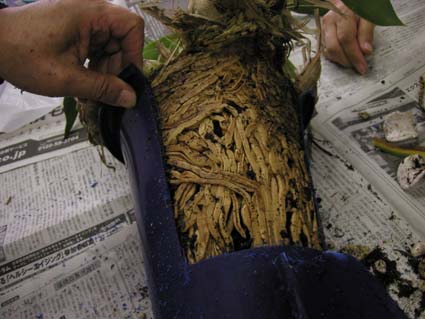 一鉢のほうは、師範代殿のテクにーク?で、すんなりと株が鉢から抜けました。